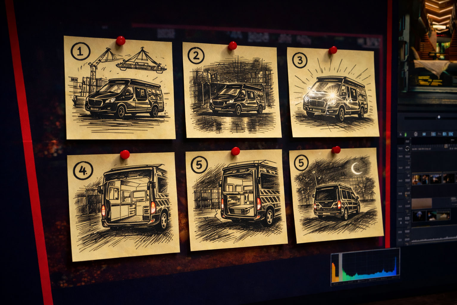 Welche Szenen werden wo aufgenommen, wer ist beteiligt, was muss vor Ort bereitstehen? Der Szenenplan sorgt dafür, dass der Drehtag strukturiert und effizient abläuft.