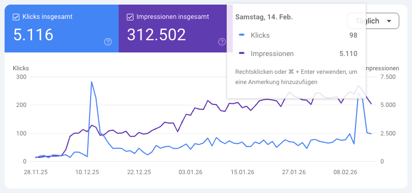 Wir überwachen in der Google Search Console, ob deine Website korrekt auslesen werden kann und verfolgen die Impressions- & Klick-Rate deines Unternehmensauftritts.