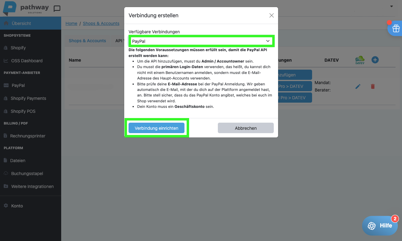 Um den Prozess der Pathway-Anbindung optimiert zu starten, benötigen wir einige Angaben von dir bzw. deinem Steuerberater.
