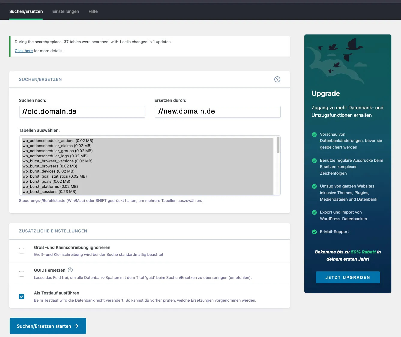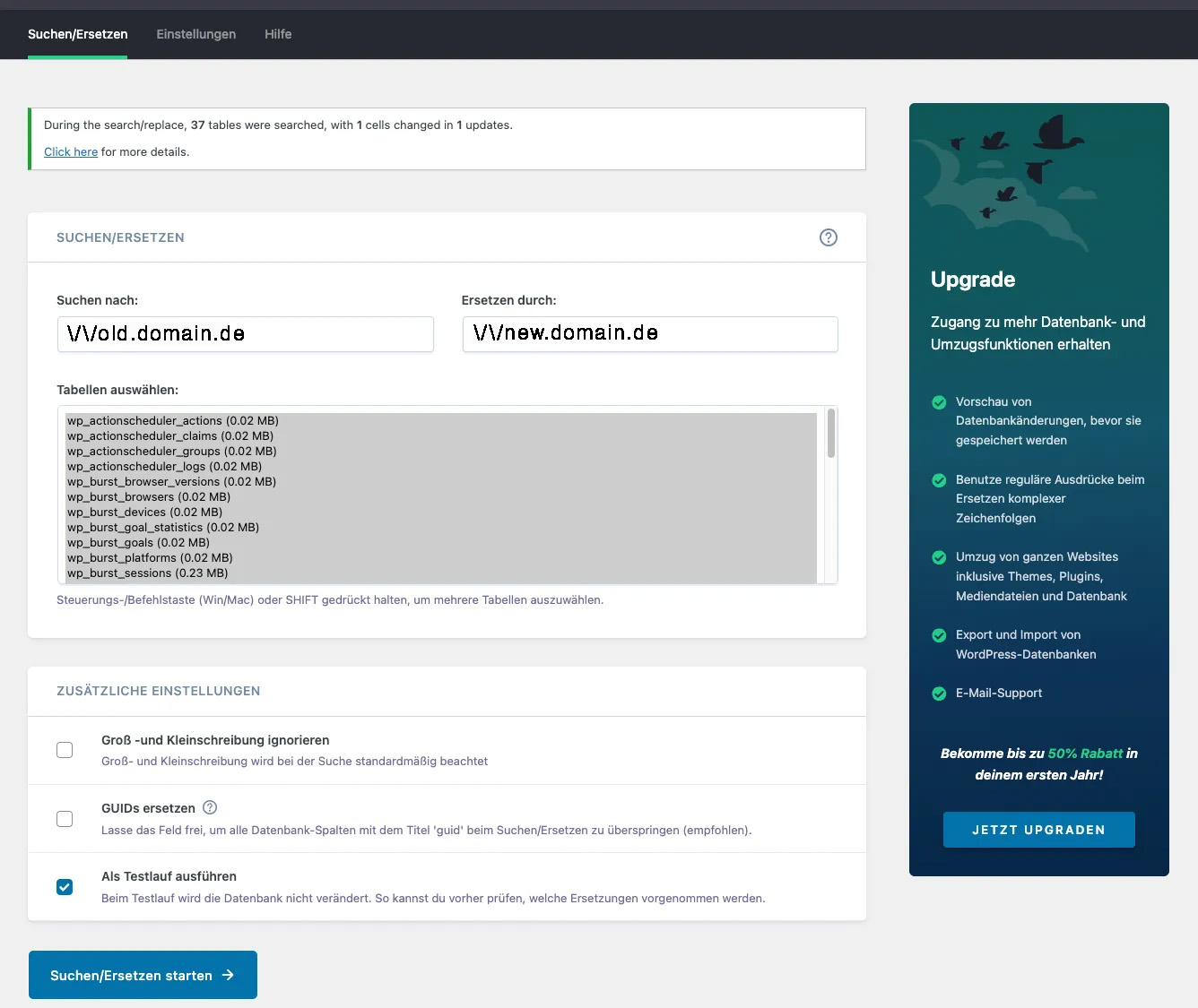 Für diesen Task nutzen wir das Plugin „Better Search & Replace“.